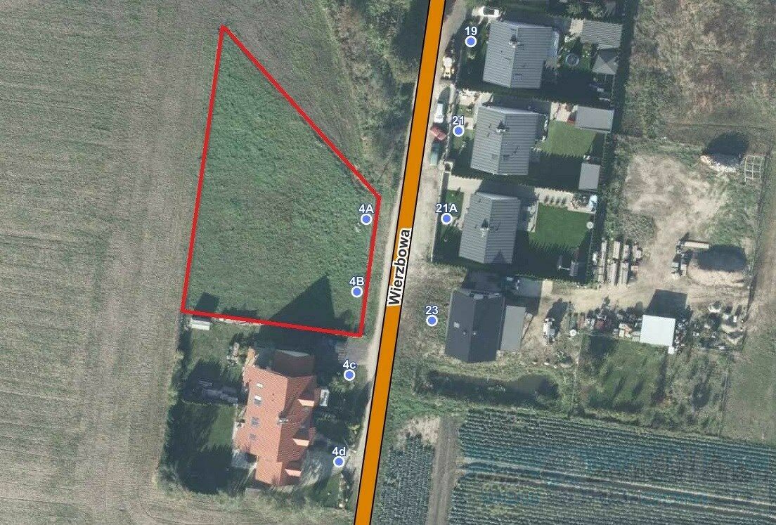 Działka znajduje się w miejscowości Czerlejnko, przy ulicy Wierzbowej. To obszar typowo wiejski, z rozproszoną zabudową i dużą ilością otwartej przestrzeni, co sprzyja spokojnemu otoczeniu. Ulica Wierzbowa biegnie przez środek wsi, a jej okolica to głównie pola i pojedyncze domy.